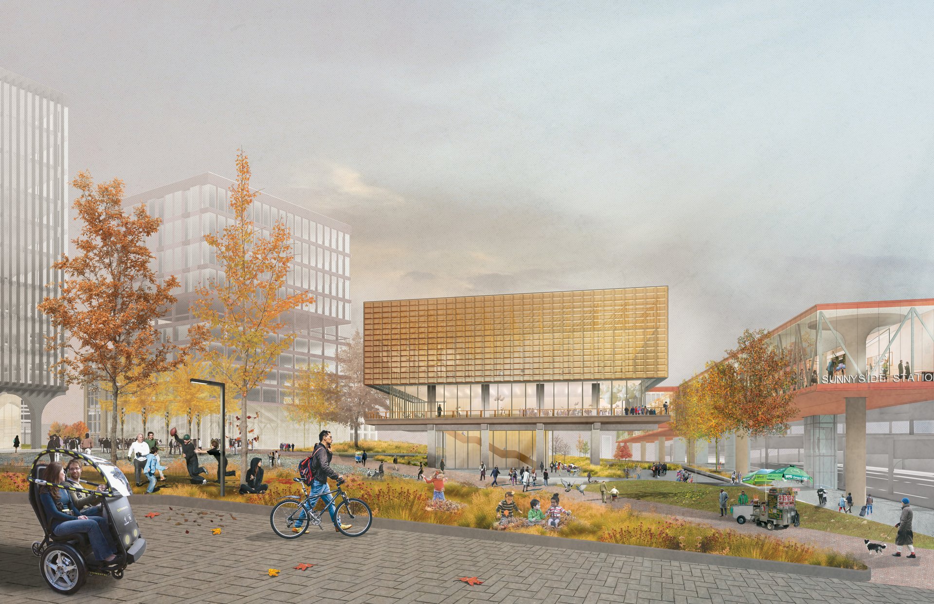 This Master Plan envisions Sunnyside Yard as a human-centered neighborhood with a robust mix of uses embodying the vibrancy of Queens. This vision embraces the density and variety that make urban neighborhoods walkable, lively, and environmentally sustainable.